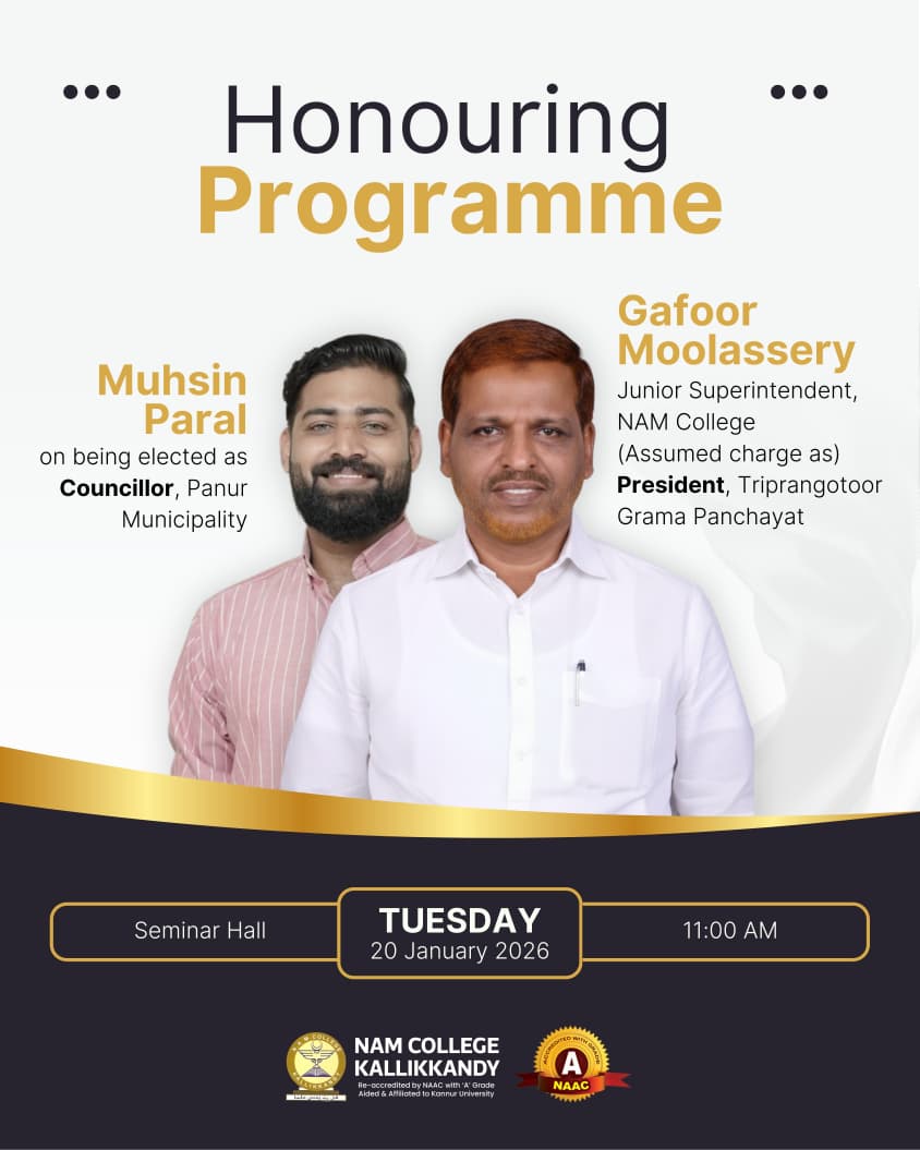 • Inauguration of renovated college library building, nomenclature of the entrance gate of indoor stadium and seminar hall, honouring toppers on 16:09:2022.