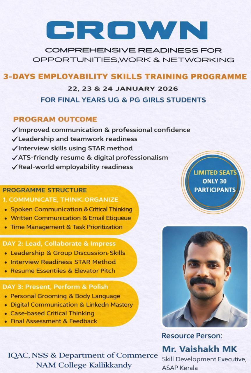• Work Readiness Programme - Career grooming workshop by Placement Cell, ASAP, CCC, IQAC