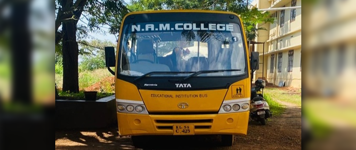 NAM College operates buses for the convenience of students coming from nearby locations... Bus service is available on selected routes like Peringathoor, Nadapuram and Panoor for the students. Students who wish to avail the bus facility are directed to apply for the same in advance. They have to remit the annual bus fee in installments. Students will have to collect bus passes from the college office before availing the bus facility. They are also directed to produce bus passes when demanded by the authorized person. Bus fees once remitted will not be refunded in any case. Discontinuation is not permitted in the midst of a semester. If a student wants to discontinue the bus facility he/ she must apply for the same in advance, before the starting of the next semester. If discontinues after starting a semester he/she will have to remit the full bus fee of the semester. Students must behave with dignity and courtesy inside the bus and they are forbidden from causing damages to the bus, its body or seating arrangements.