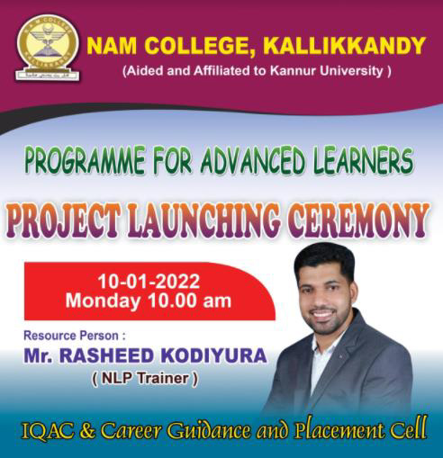 The official launching of the programme done by Dr.Muhammed Kutty KK (Principal) on 10-01-22. Mr Rasheed Kodiyura, NLP Trainer handled a wonderful session on personality development. 50 students of different departments have attended the programme.