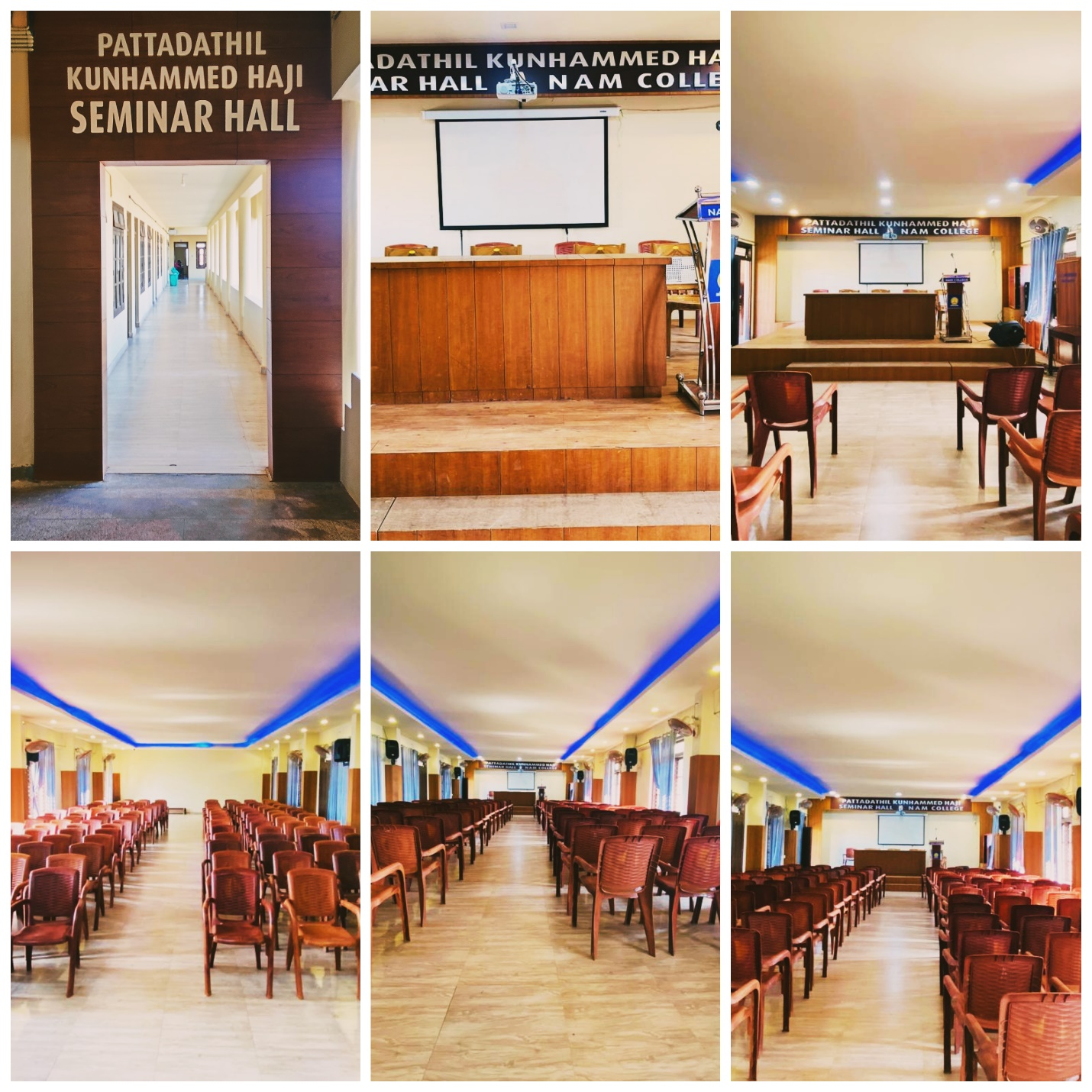 The college has a well-equipped seminar hall with LCD projector & Sound System. Students are advised to make use of this facility as a supplementary learning device besides the classroom lectures. Films of educational value and films based on prescribed English texts (novel and drama) are exhibited, depending on availability. The Seminar hall regularly hosts seminars/ conferences /discussions/ symposiums/ exhibitions at various levels. The well furnished hall which is named after the philanthropist and one of the founders of the college Pattadathil Kunhammed Haji is spacious enough to contain more than hundred people.