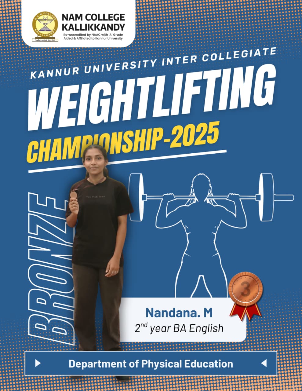 2019 -wrestling-silver medal Kannur University , 2020 -wrestling-gold/judo-gold Kannur University , 2022 - wrestling-silver/judo-gold and all india participation