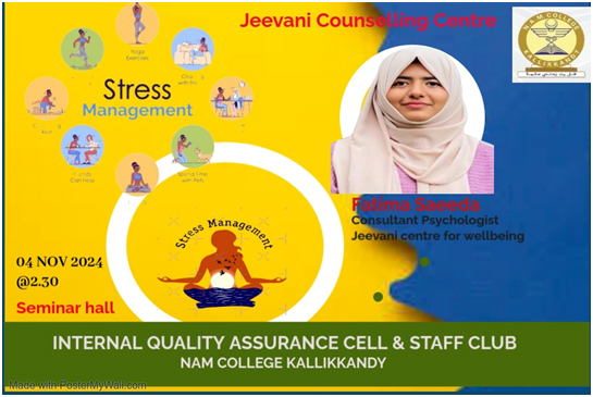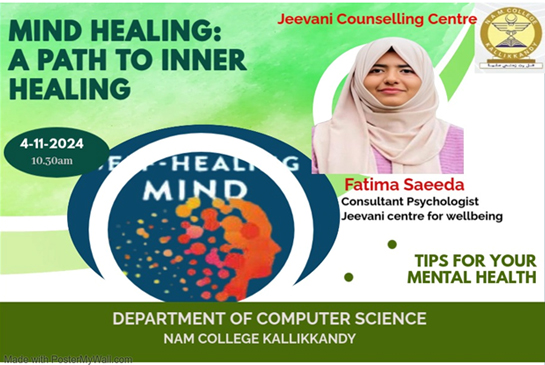 Jeevani- Centre for Student Well-being is a program launched by the Govt of Kerala aimed at enhancing mental health and emotional well-being of students.The center provides counselling services, mental health awareness initiatives, and stress management workshops to assist students in managing academic stress, emotional challenges, and personal issues. Jeevani center at NAMC offers a supportive space where students can seek help for navigating their personal and academic development.