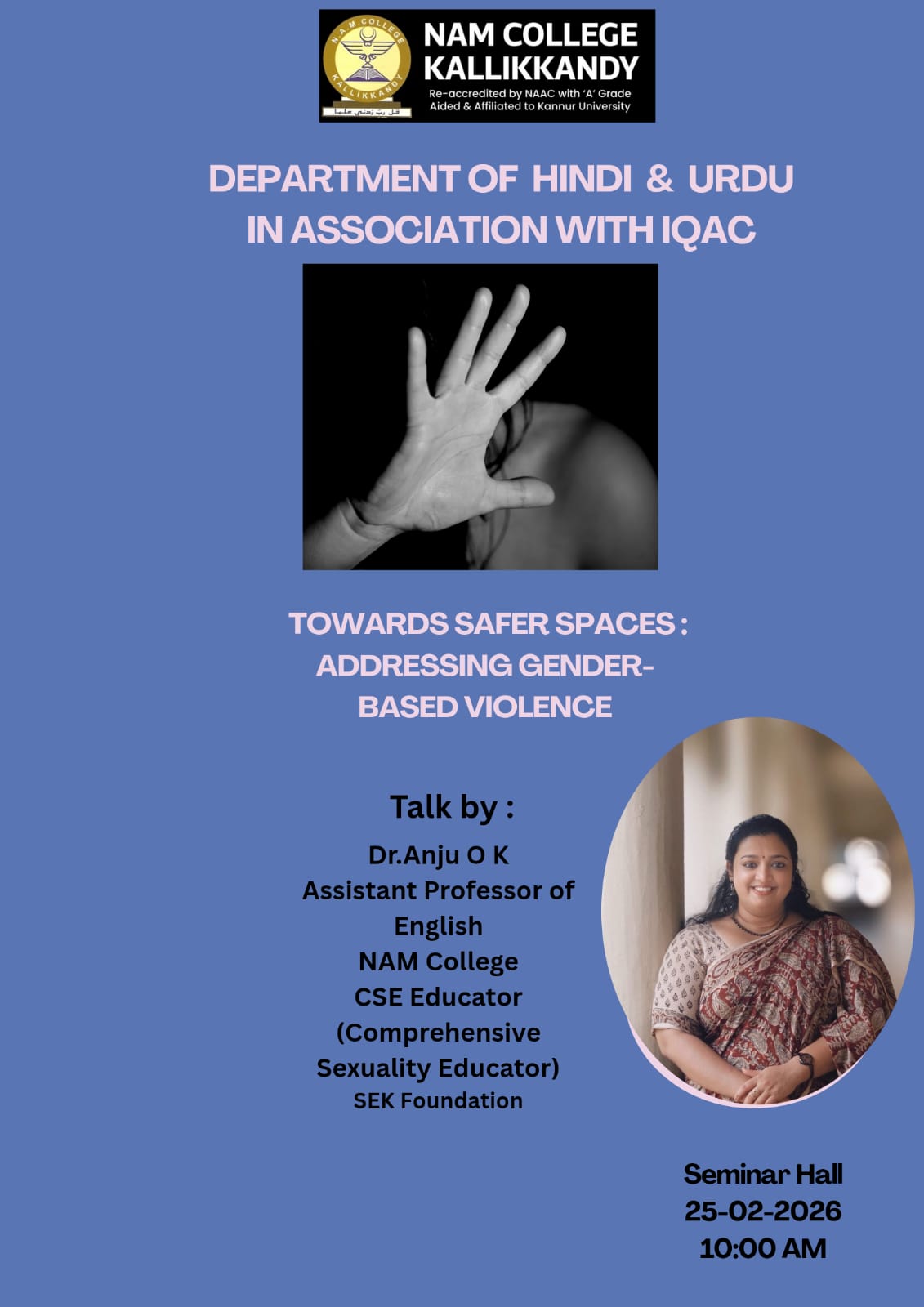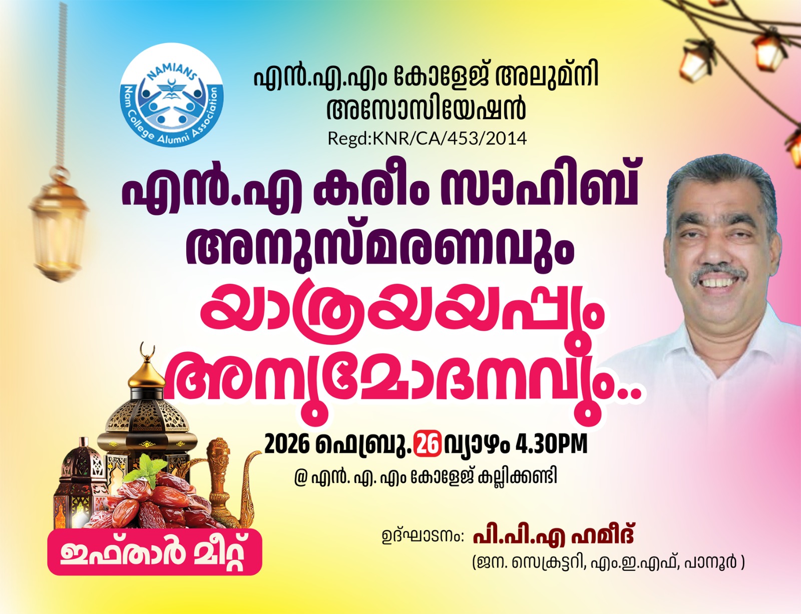 It gives me immense pride and joy to welcome you to NAM College Kallikkandy. Our institution has always stood as a beacon of knowledge, discipline, and holistic development, nurturing generations of learners to become responsible citizens and leaders of tomorrow.